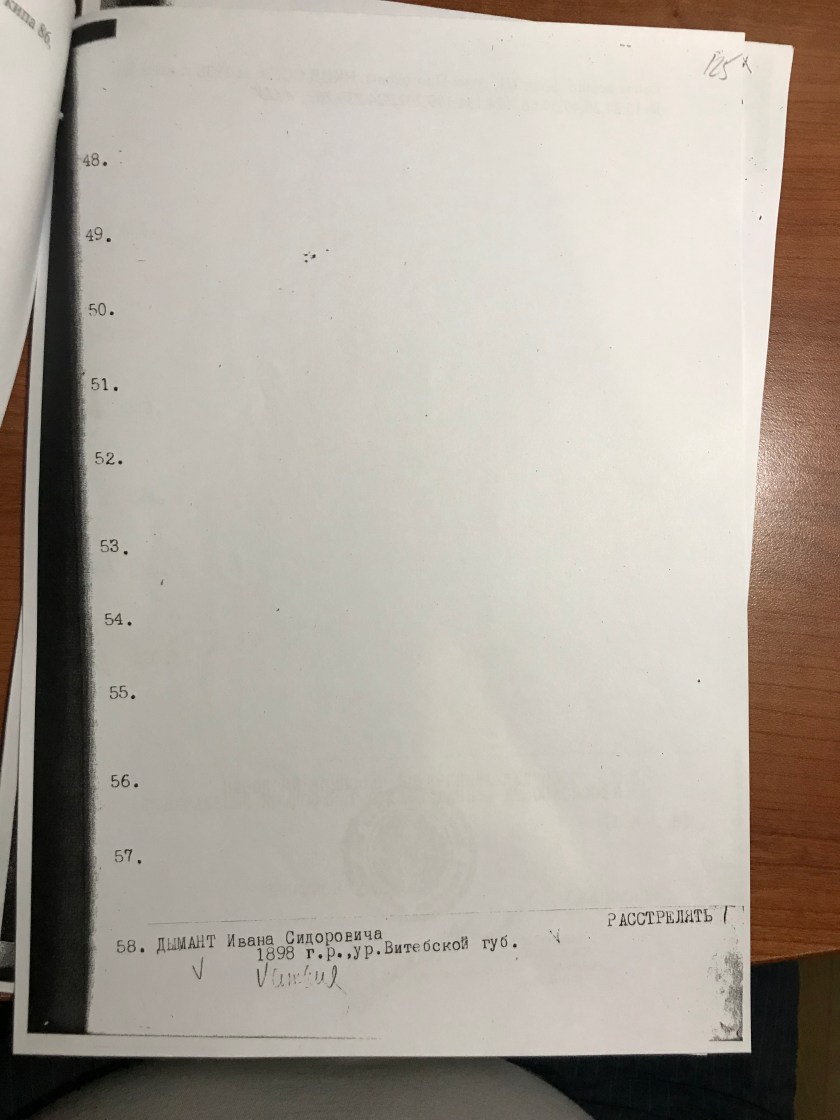 Сегодня, благодаря родственникам ДЫМАНТ Ивана Сидоровича, получены копии: протокола №66 от 20.01.38 г. (Комиссия НКВД), приказа на расстрел и акт о расстреле латышей 4.02.38 г. в Томской тюрьме.