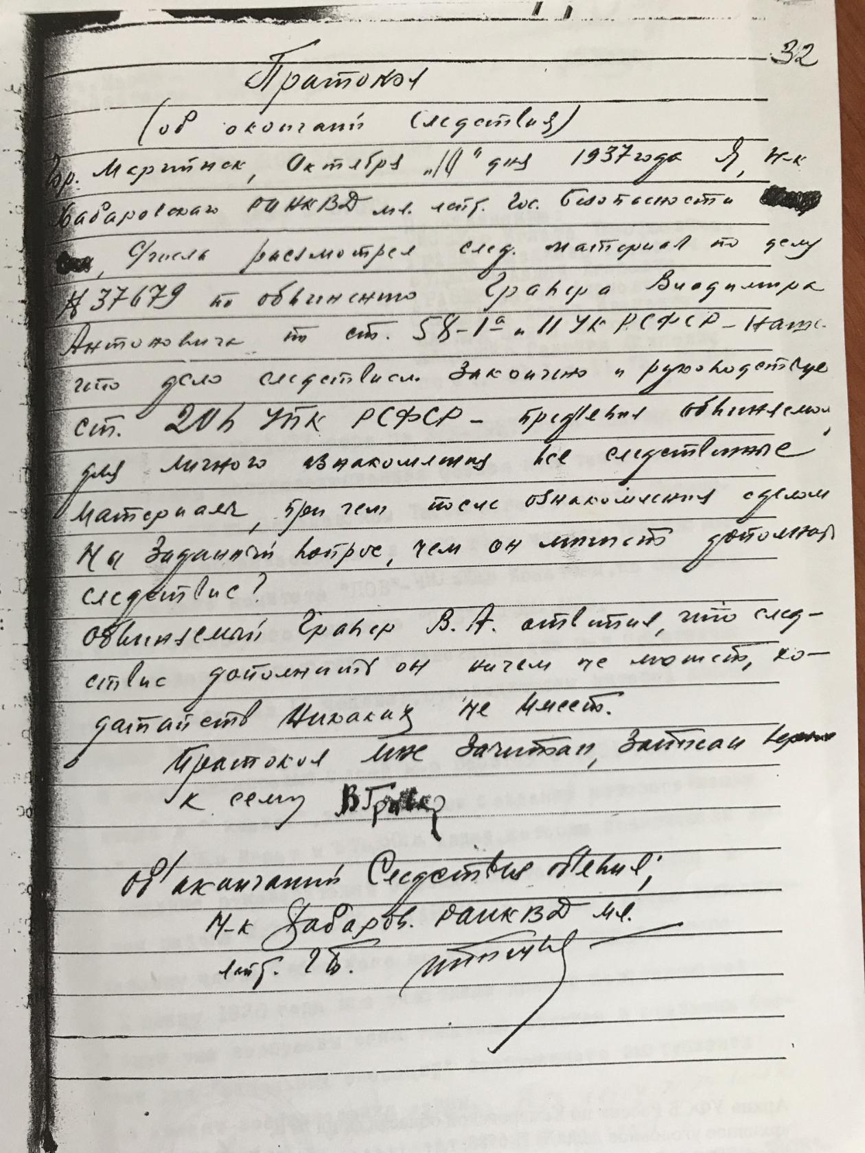 Осенью 1937 года видимо был прикомандирован к Анжерскому ГО НКВД. Активно участвовал в репрессиях : фальсифицировал дела, вел допросы . Причем находясь в Анжерке, подписывался как начальник Хабаровского РО НКВД.